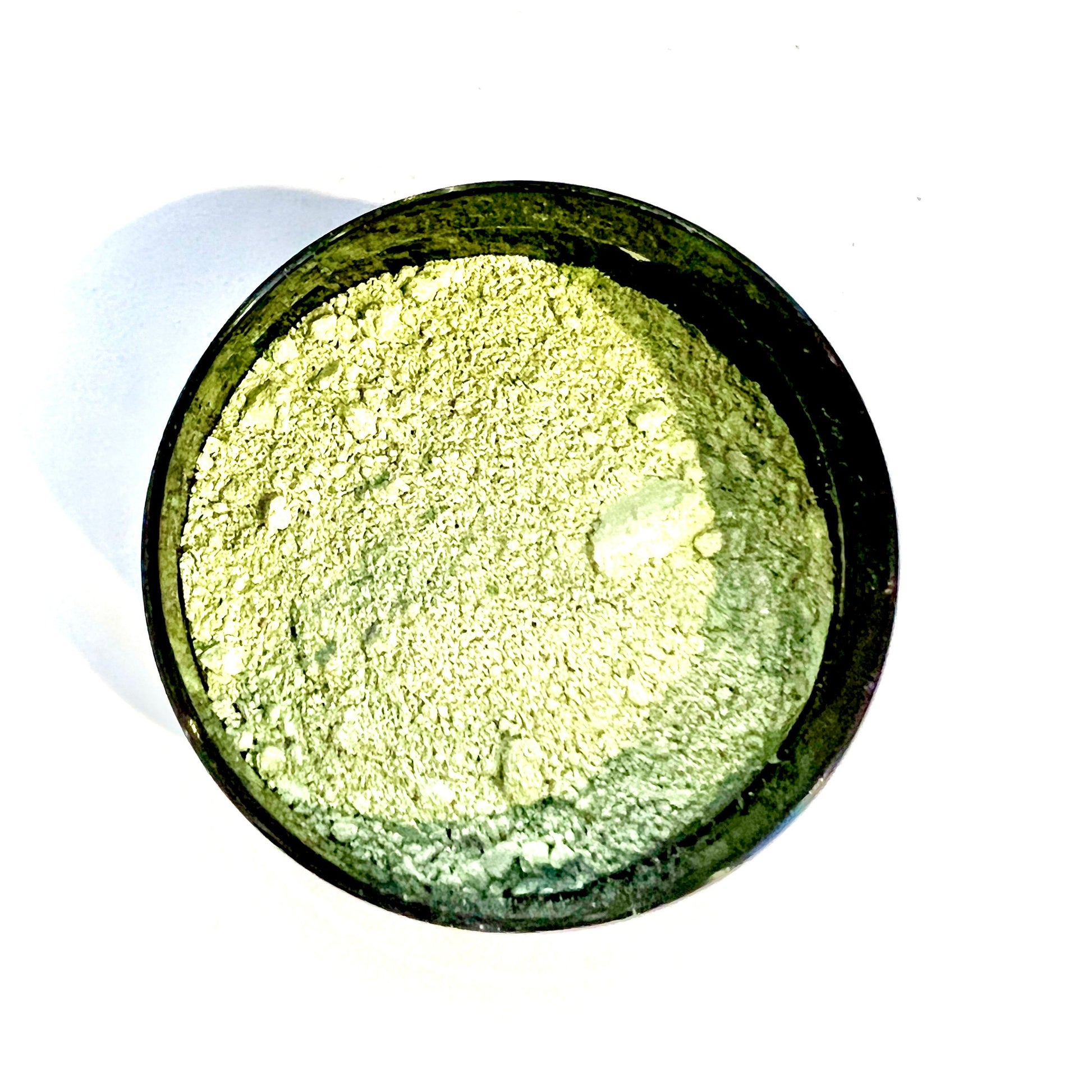 Matcha Green tea is a potent detoxifying and is rich in antioxidants. Green tea is packed with antioxidants, which are compounds that help fight free radicals. It's full of caffeine, has anti-inflammatory effects, is a natural acne treatment and is a natural skin toner. Also contains kaolin clay, which absorbs oil, cleans pores and soothes skin. It is the gentlest of cosmetic clays. Also in this beauty is French green clay, which absorbs oil and toxins and is great for oily or acne prone skin. This mask comes in powdered form for an extended shelf life. Simply place roughly a teaspoonful in a small bowl, add a small amount of water, a bit at a time until it is the thickness you prefer. (I like a thicker mask, so I add just enough water to make it spreadable.) Apply to face, neck and/or chest with mask brush or fingers. Allow to dry, then rinse. This can stain, so we don’t advise using you favorite white washcloth or towel. Continue with normal skincare routine. ~ 2 oz., suitable for several (10+) uses depending on product settling and extent of area of application. Contains: organic matcha tea, French green clay, cosmetic grade kaolin clay. Pair this with our beautiful wooden bowl and brush set. Allergens: this product is made in a facility that handles tree nuts, soy and wheat. First time users are recommended to perform a hypersensitivity (patch) test. This product is not evaluated by the FDA and is not intended to treat, diagnose, cure or prevent and illness or condition. Keep in a cool, dry place in an airtight container. For external use only.