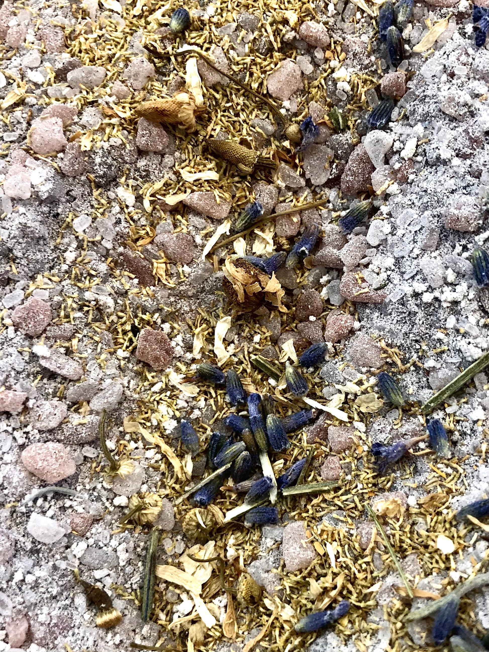 This milk bath is made with calming and soothing lavender and chamomile buds. Relax, de-stress, unwind with this milk tea bath. Use before bed or just to calm and unwind. Naturally colored and scented. Contains: milk powder, dried honey powder, epsom salt, pink sea salt, alkanet root powder, corn starch and dried lavender and chamomile. ~2oz. (1/4 cup) in a muslin bag, drop into bath water and allow to steep and diffuse, or add contents directly to water. Enough for 1-2 baths.